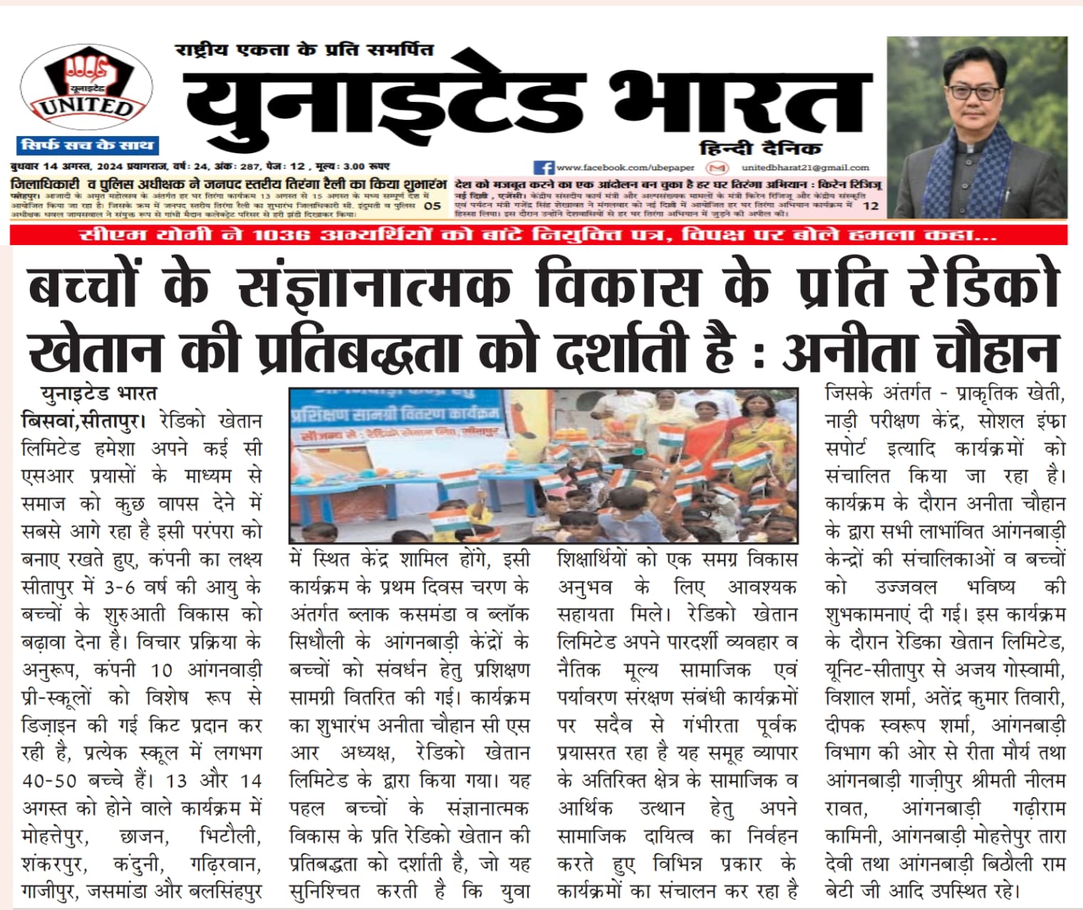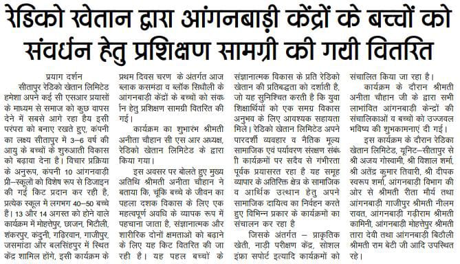 Radico Khaitan Limited supports early childhood development in Sitapur by providing specially designed kits to 10 anganwadi pre-schools, benefiting 200-250 children. The initiative fosters cognitive and physical growth, reflecting Radico's commitment to nurturing young minds and making a positive community impact.